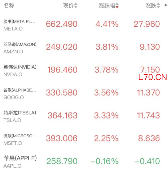 配资网站明星科技股普涨,Meta涨4.41%,谷歌、特斯拉和微软涨超2%,苹果微跌0.16%。