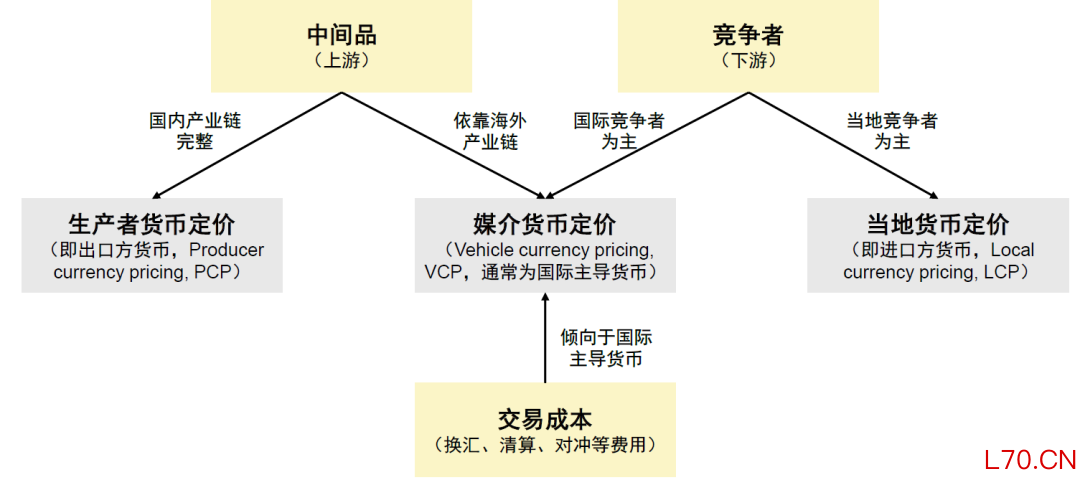另一种情况下,如果进口国本身并非该产品的重要生产国,市场中的主要竞争者来自多个第三方国家时,这些国际竞争对手采用媒介货币的概率较高,则其他海外出口商进入这个市场时也更倾向于使用媒介货币定价。此时,定价的核心目标并非对冲本币汇率风险,而是避免在竞争中因汇率波动而产生随机性的价格劣势。