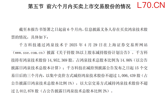 配资炒股记者注意到,自2025年以来,千方科技已经多次减持鸿泉技术股份。根据鸿泉技术于2025年4月29日披露的公告,千方科技持有鸿泉技术股份1495.24万股,占鸿泉技术总股本比例为14.86%(以公告披露日鸿泉技术总股本计算)。根据最新公告,千方科技目前持有鸿泉技术9.99%股份。