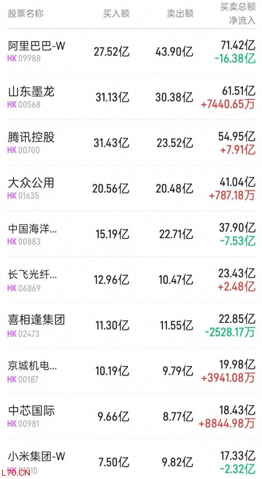 此外,中芯国际(00981)获净买入2.6亿港元泰扬策略,而喜相逢集团(02473)遭净卖出2528万港元。