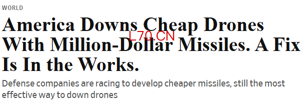 成本不对称:据《华尔街日报》报道,美军必须用价值数百万美元的防空导弹拦截成本不到十万美元的伊朗无人机,高成本对低投入的消耗战正在加剧财政与军事压力。