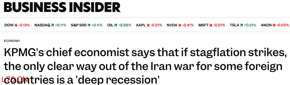 美国总统特朗普发表“胜利讲话”后,投资者和分析人士并未给予积极回应。多数人认为军事行动对霍尔木兹海峡等关键航道的威胁仍在,并影响全球能源和商品市场,造成经济增长与通胀之间的压力传导。毕马威(KPMG)首席经济学家黛安·斯旺克警告,美伊战争引发多重供应冲击,推动全球滞胀风险上升,深度衰退可能成为全球经济的唯一出路。