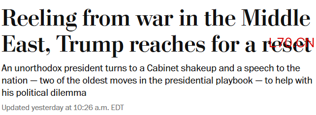 《华盛顿邮报》4月2日的分析称,美国总统特朗普在中期选举前约6个月发表全国讲话,意在“应对政治风波、缓和民众担忧、重塑政治叙事”,但此举效果有限,也未明确展示战略目标。